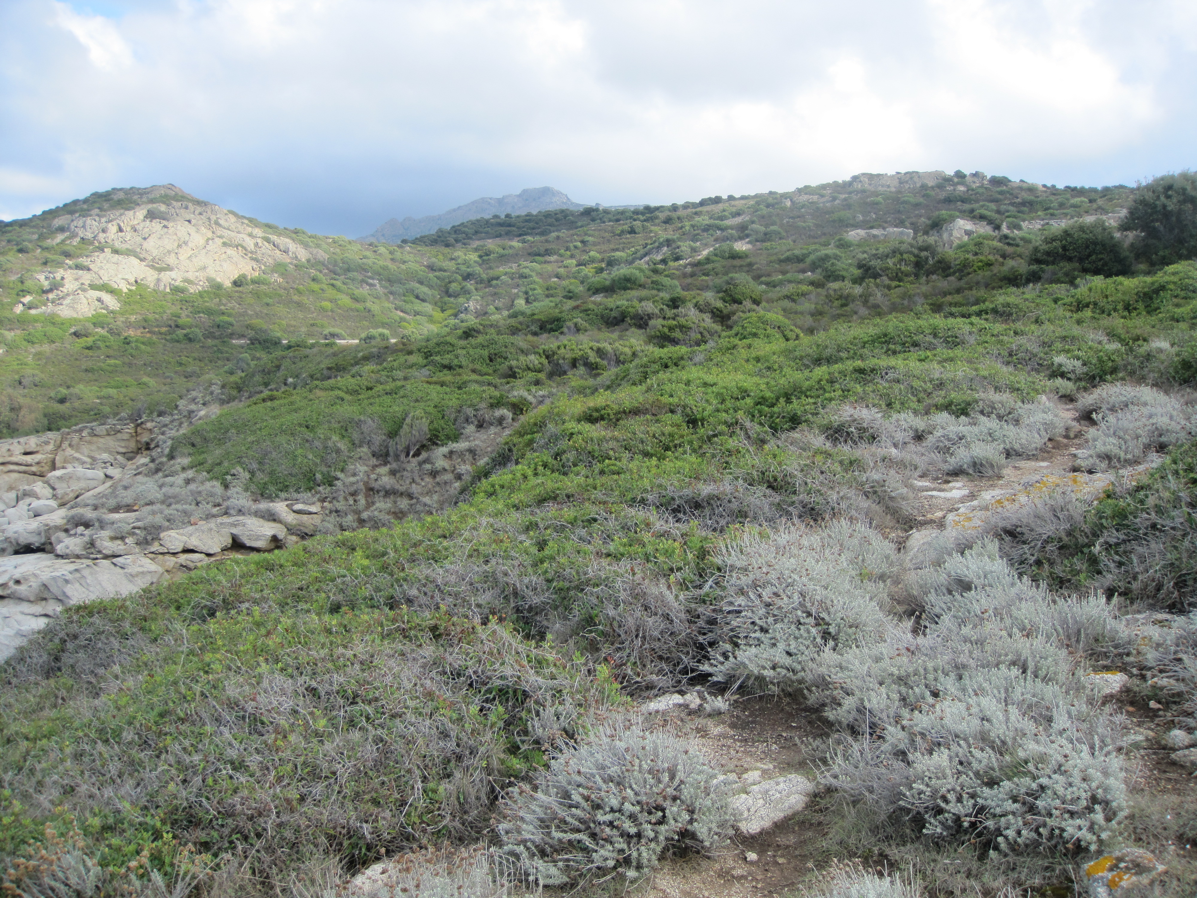 Sur le chemin, les cailloux résonnent en s’entrechoquant et l’écho qui m’est renvoyé par les rochers de la colline me font croire que je suis un cheval. Mes jambes si fines comme des brindilles sont habituées à ce genre de terrains difficiles, abrupts et sauvages. Je considère que le cavalier imaginaire qui me guide fait partie de moi-même. Je suis le chemin jusqu’à ce qu’il s’ouvre sur le maquis et sur la mer. Le ciel est ma robe, d’un gris bleuté où les nuages blancs dessinent des pommes.
