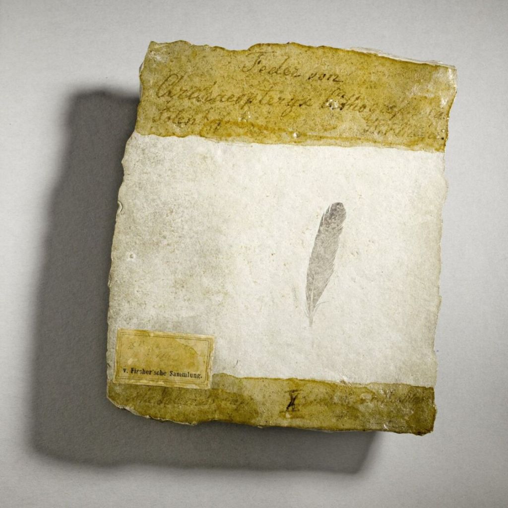 La plume fossilisée d’archéoptéryx découverte en Bavière en 1861.